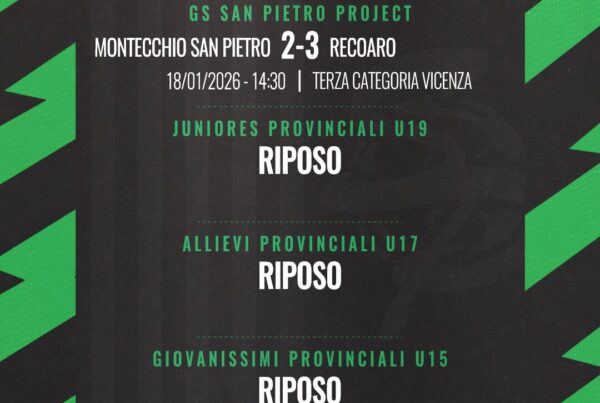 #GIOVANILI⚡️❌ Sconfitta amara per il GS San Pietro Project, che al Giuriato cede 2-3 al Recoaro al termine di una gara combattuta e decisa da episodi, con i ragazzi rimasti in partita fino all’ultimo minuto.