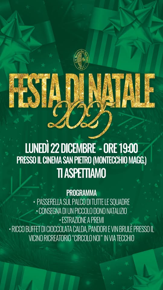 Il G.S. San Pietro apre le porte a tutti quelli che, durante l’anno, hanno vissuto, tifato, sostenuto e condiviso il nostro percorso 💚🖤 Atleti, staff, dirigenti, famiglie e amici: questa sera è per voi.📅 Lunedì 22 dicembre 🕖 Ore 19:00 📍 Cinema San Pietro (Montecchio Maggiore)🎁 Cosa ci aspetta? ⚫Un momento simbolico e sentito: tutte le nostre squadre saliranno sul palco, una ad una, per un saluto natalizio e un piccolo dono🟢un pizzico di fortuna con l’estrazione a premi⚫il calore vero del Natale, quello che continua davanti a una cioccolata calda, pandoro e vin brulè al Circolo Noi – Via Tecchio 7❤️ Perché il Natale è anche aiutare Durante la serata raccoglieremo generi alimentari a lunga conservazione da destinare alle famiglie in difficoltà. Un gesto semplice, ma dal valore enorme.🎄 Non è solo una festa. È un momento per riconoscerci, guardarci negli occhi e dirci grazie. Vi aspettiamo per vivere insieme il Natale del G.S. San Pietro. 🥳💚🖤Sempre #orgogliosiefieri⚫️🟢 #primacategoria #neroverdi #gssanpietro #calciovicentino