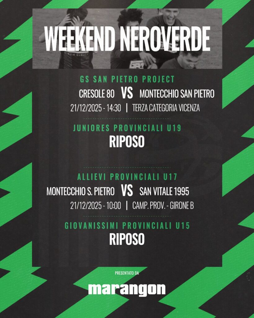 Il G.S. San Pietro apre le porte a tutti quelli che, durante l’anno, hanno vissuto, tifato, sostenuto e condiviso il nostro percorso 💚🖤 Atleti, staff, dirigenti, famiglie e amici: questa sera è per voi.📅 Lunedì 22 dicembre 🕖 Ore 19:00 📍 Cinema San Pietro (Montecchio Maggiore)🎁 Cosa ci aspetta? ⚫Un momento simbolico e sentito: tutte le nostre squadre saliranno sul palco, una ad una, per un saluto natalizio e un piccolo dono🟢un pizzico di fortuna con l’estrazione a premi⚫il calore vero del Natale, quello che continua davanti a una cioccolata calda, pandoro e vin brulè al Circolo Noi – Via Tecchio 7❤️ Perché il Natale è anche aiutare Durante la serata raccoglieremo generi alimentari a lunga conservazione da destinare alle famiglie in difficoltà. Un gesto semplice, ma dal valore enorme.🎄 Non è solo una festa. È un momento per riconoscerci, guardarci negli occhi e dirci grazie. Vi aspettiamo per vivere insieme il Natale del G.S. San Pietro. 🥳💚🖤Sempre #orgogliosiefieri⚫️🟢 #primacategoria #neroverdi #gssanpietro #calciovicentino