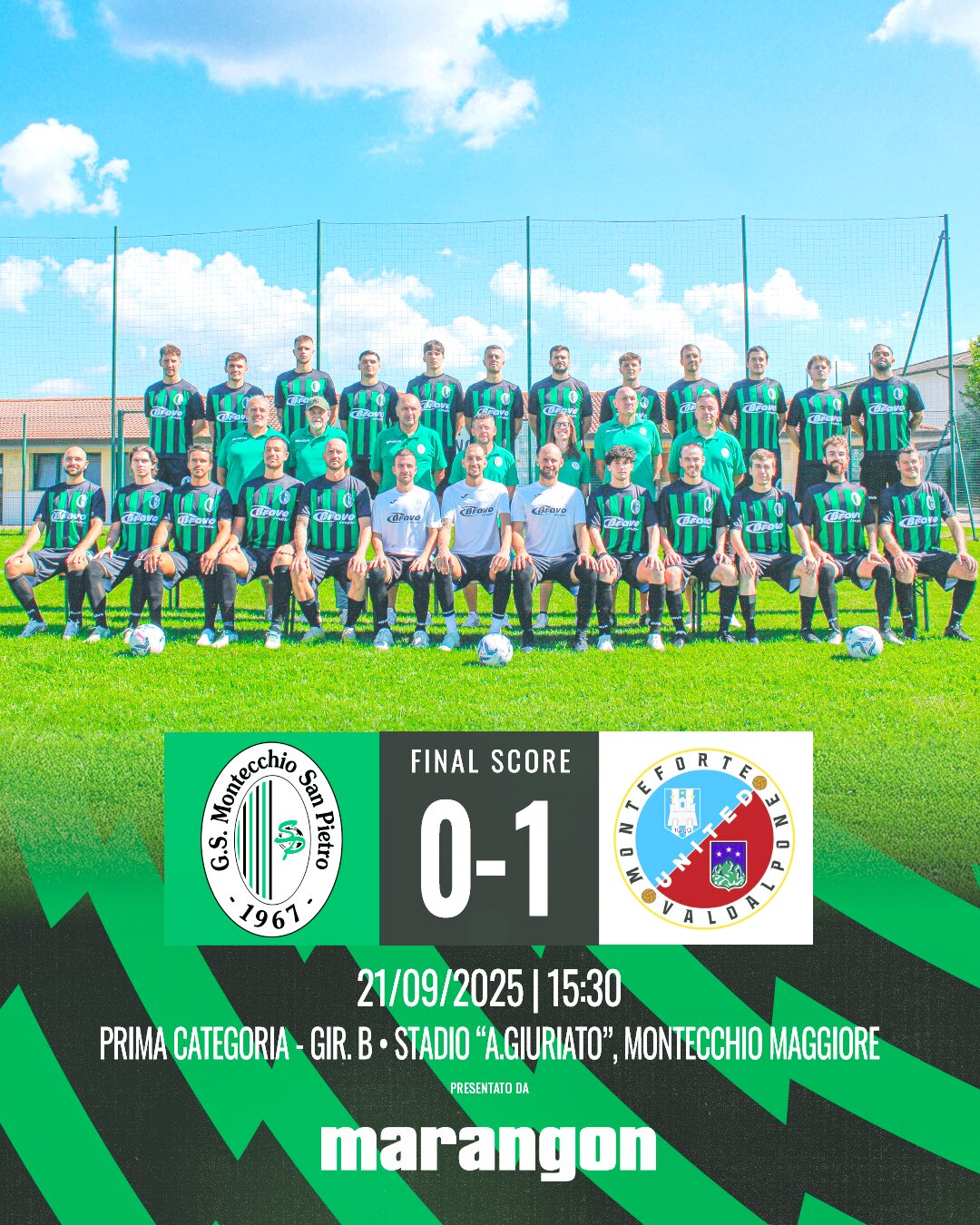 Seconda di campionato amara per i #neroverdi, che cadono in casa al 95’ su punizione, dopo aver avuto in mano la partita per lunghi tratti ⚽️ All’83’ l’occasione più grande: un rigore che avrebbe potuto cambiare il destino della gara, ma che purtroppo non è stato concretizzato.La squadra ha però dimostrato personalità, creando tanto e concedendo poco: il rammarico sta tutto nelle occasioni non sfruttate. Questo deve darci ancora più consapevolezza e fame per continuare a crescere 🔥Il campionato è appena iniziato: ora testa bassa, lavoro e determinazione. La strada è lunga e siamo pronti a dimostrare chi siamo💪Sempre #orgogliosiefieri ⚫️🟢 #primacategoria #neroverdi #gssanpietro #calciovicentino