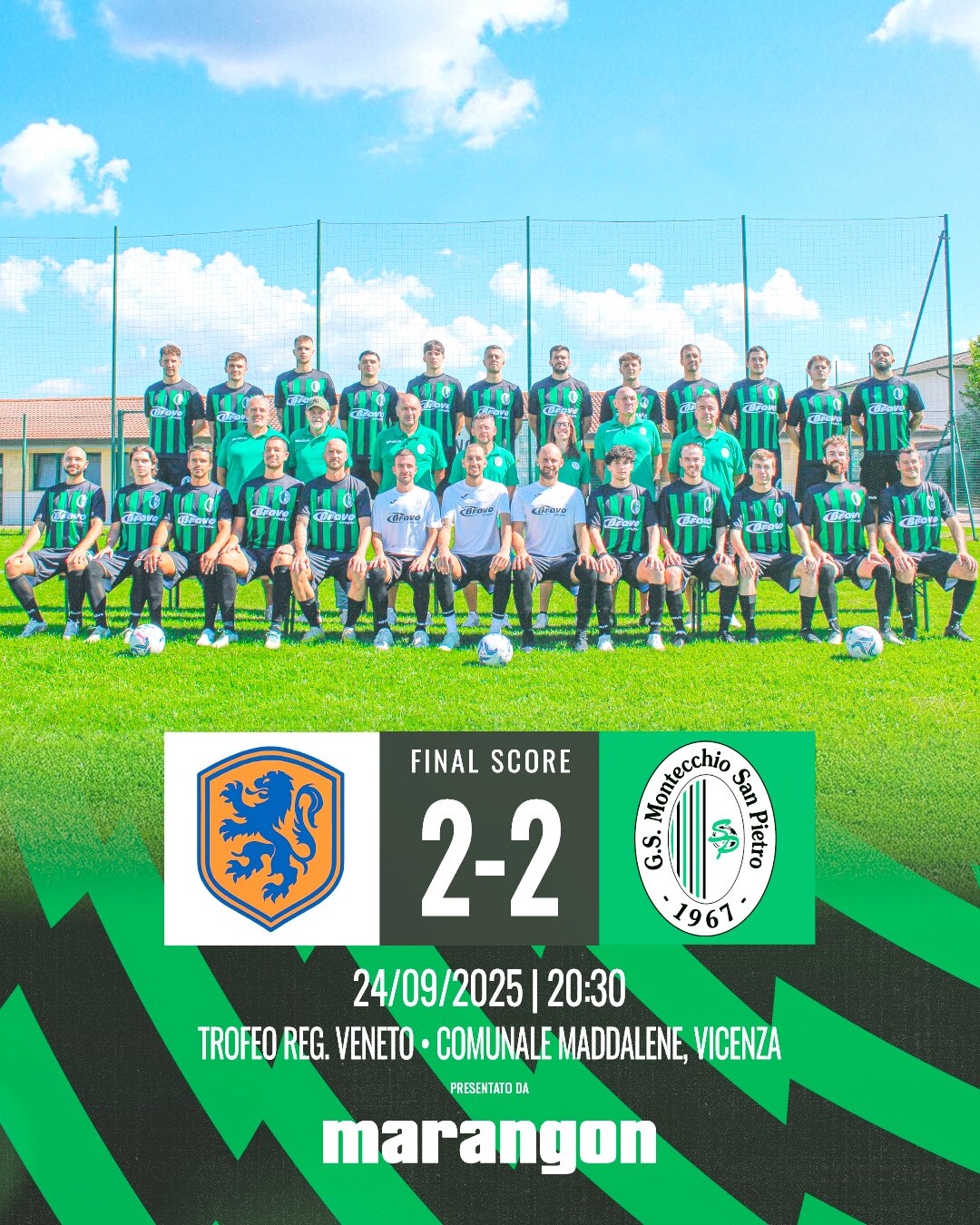 Si chiude con un pareggio la nostra avventura in coppa: 2-2 contro il Maddalene Pedezzi che non basta per accedere al turno successivo, reti firmate da Maccà e Visonà. Dispiace per l’eliminazione, ma anche questa esperienza ci ha permesso di crescere e di testare la squadra in vista delle prossime sfide. Ora possiamo concentrare tutte le energie sul campionato, con ancora più determinazione e fame di riscatto 🔥 Avanti #neroverdi, la stagione è appena cominciata💪Sempre #orgogliosiefieri ⚫️🟢 #primacategoria #neroverdi #gssanpietro #calciovicentino #calciodilettanti
